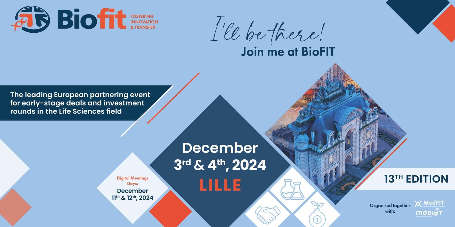 We are excited to announce that Kantify will be participating in BioFIT 2024, Europe's leading event for open innovation, technology transfer, and early-stage innovations in the life sciences field. The event will take place in person on Tuesday, December 3rd, and Wednesday, December 4th, 2024, at the Lille Grand Palais in Lille, France. Additionally, BioFIT will host two days of digital meetings on December 11th and 12th, 2024.